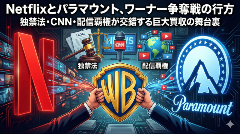 海外の反応, エンタメ・カルチャーNetflixとパラマウント、ワーナー争奪戦の行方 独禁法・CNN・配信覇権が交錯する巨大買収の舞台裏ニュース 米配信大手のNetflixは、ワーナ… せかはん2025年12月13日