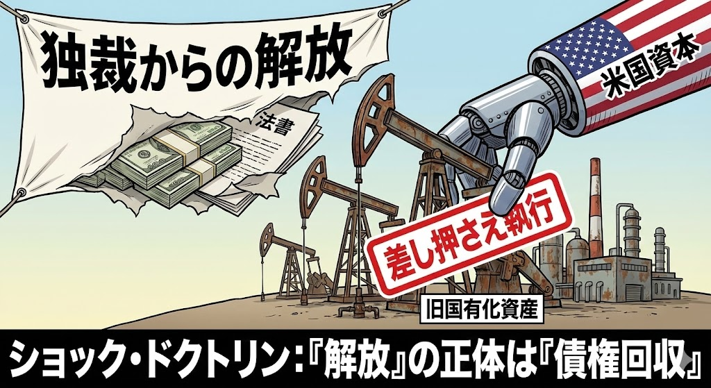 この二つを重ね合わせたとき、今回の出来事は単なる独裁者の逮捕劇ではなく、巨大な債権回収と統治実験のハイブリッドとしての姿を見せ始めます。