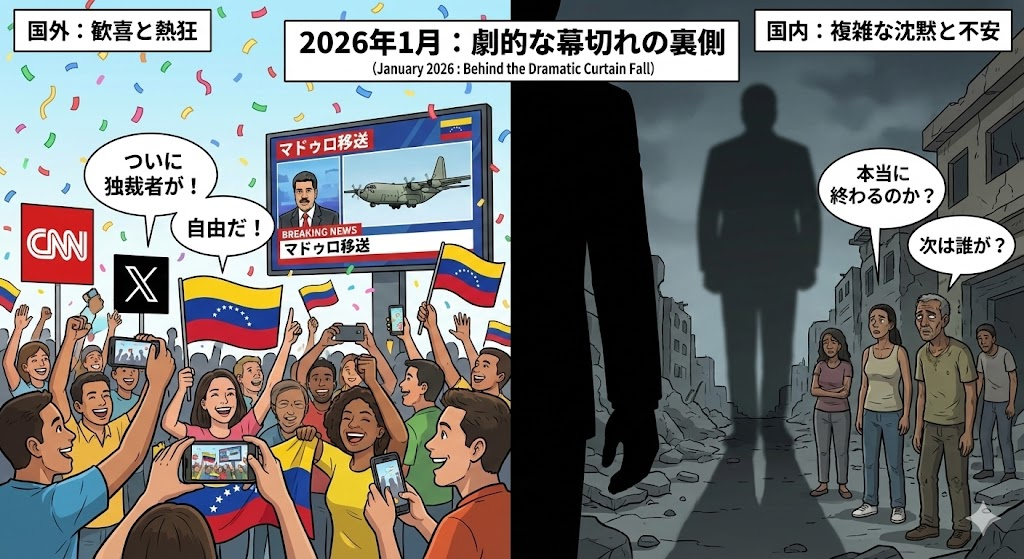CNNやBBC、そしてX(旧Twitter)には、歓喜に沸くベネズエラの人々の姿が溢れました。特に、独裁体制を逃れて国外へ脱出した数百万人の移民たちにとって、これは待ち望まれていた瞬間であり、その涙と喜びは紛れもない本物でしょう。