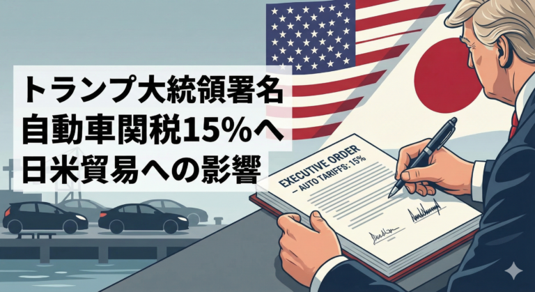 テクノロジー / 安全保障, 地政学, 海外の反応, 経済・市場, 選挙・政策トランプが自動車関税15%の大統領令に署名 日本車と日米貿易への影響トランプ氏、自動車関税を15%に引き下げる… せかはん2025年9月5日2件のコメント