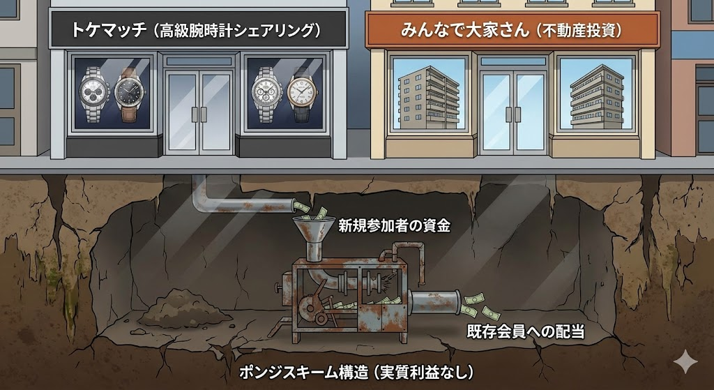 「高級腕時計を預ければ、月々の安定収入が得られる」という期待を作り、その期待によって新規の預託を集め続ける仕組みにありました。